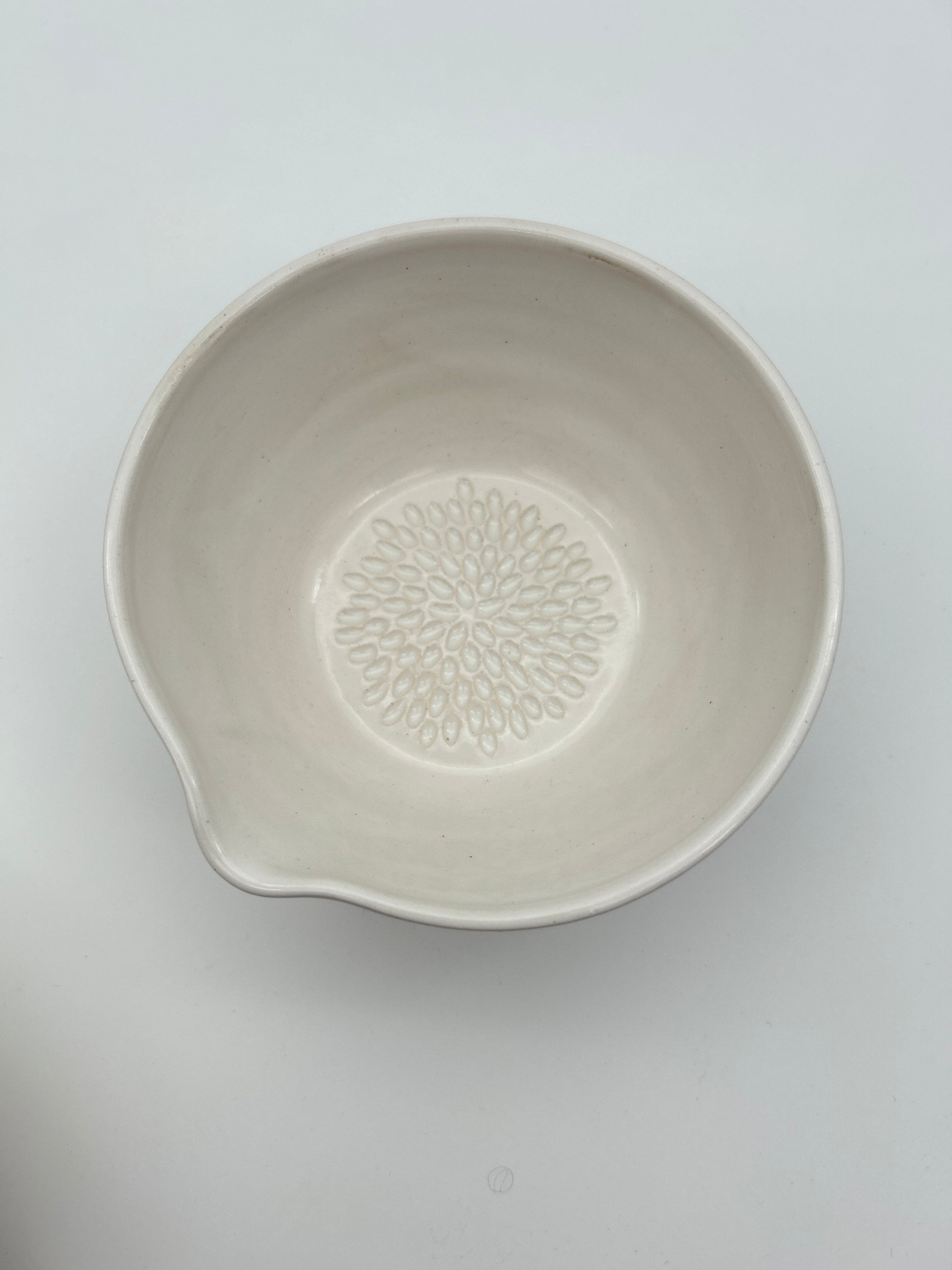 Hvitløksrasp skål med helletut. Denne er perfekt til å lage vinaigrette, dip eller pizzasaus i. du rasper hvitløken rett i skåla har oppi resten av ingrediensene og serverer.
